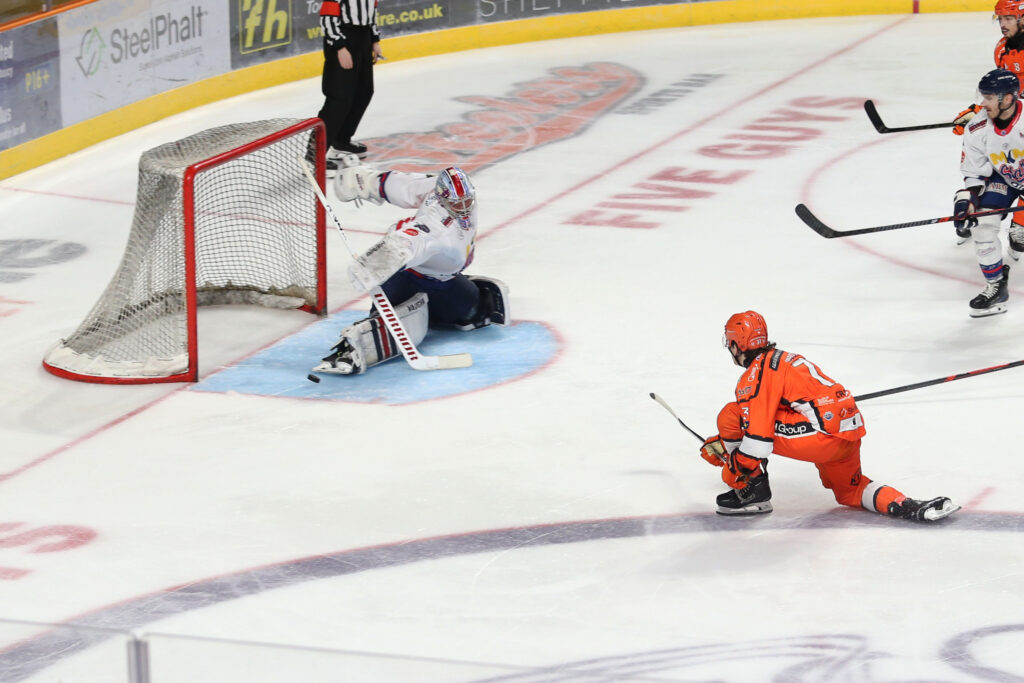 With his family in the building, Kyle slotted home his first goal for the Steelers, his first goal of his professional career at 37.15