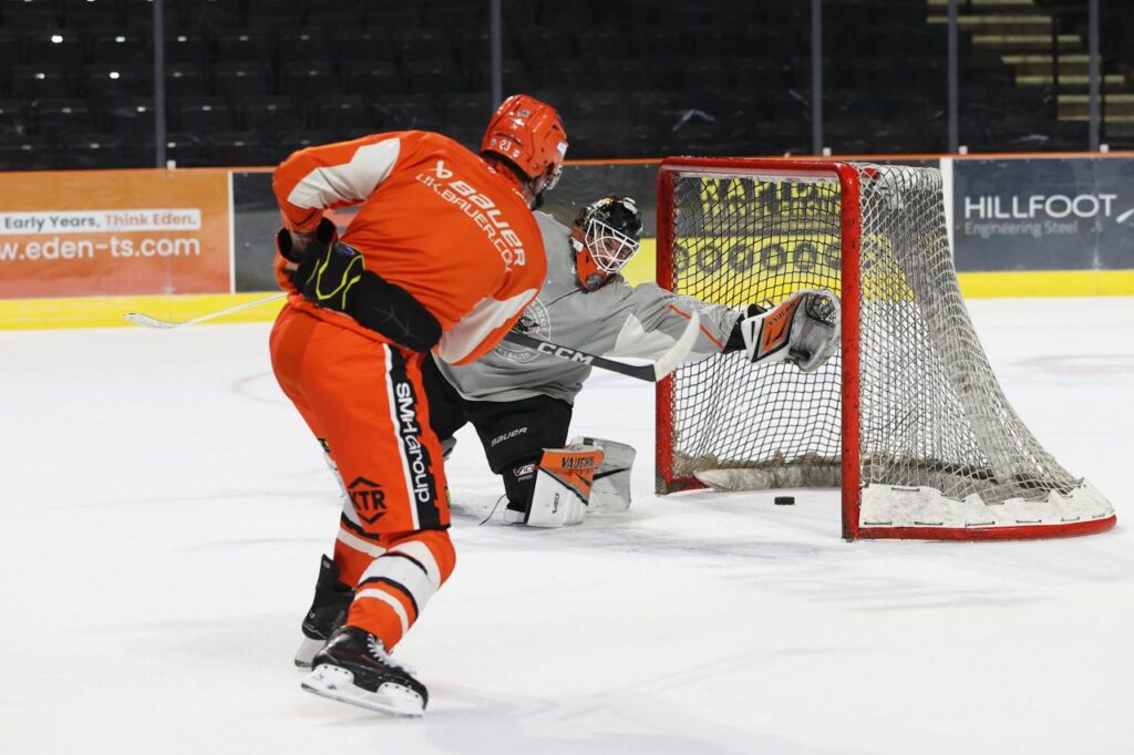 Then to the on ice training session – it was Team Orange Vs. Team Black in many drills and competitions.