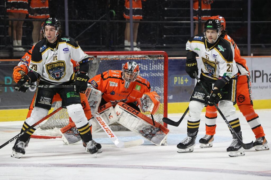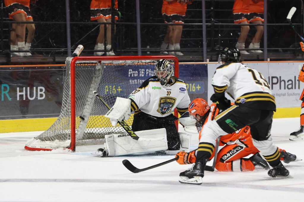 The third period began in frustrating fashion for the home side. Just over two minutes in, Panthers debutant Johnny Curran appeared to look for a cross-crease pass, but his mis-hit shot slid under Greenfield at the near post to restore Nottingham’s lead at 2–1. The goal briefly swung momentum back towards the visitors, who began to find their rhythm.