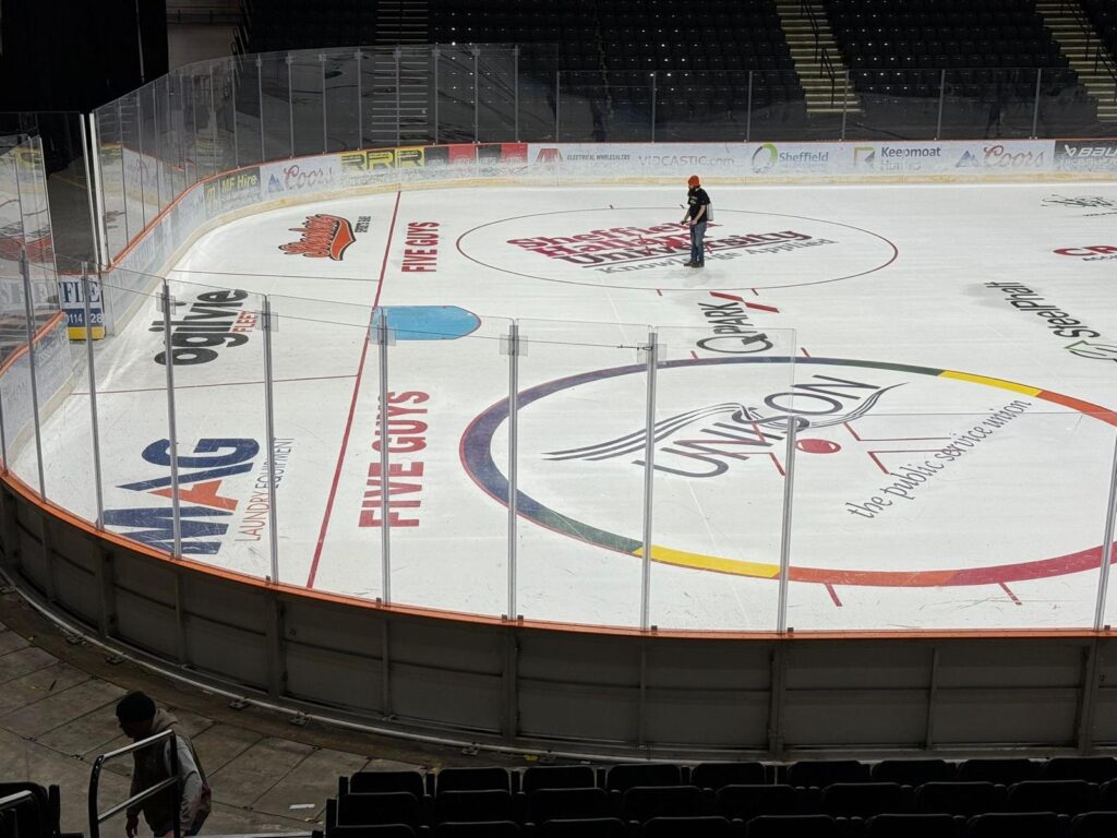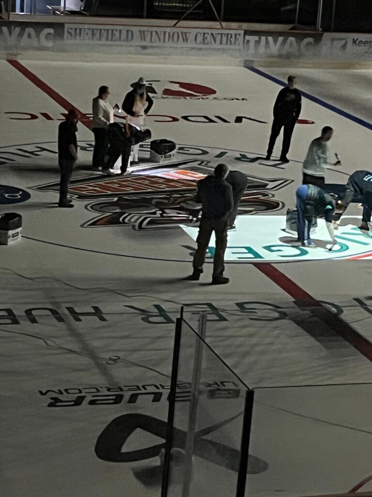 The days are counting down to the start of a new season, whilst the team are presently training at Ice Sheffield, the ice painting team were working through the night ensuring all of our sponsors logos were on the arena ice.