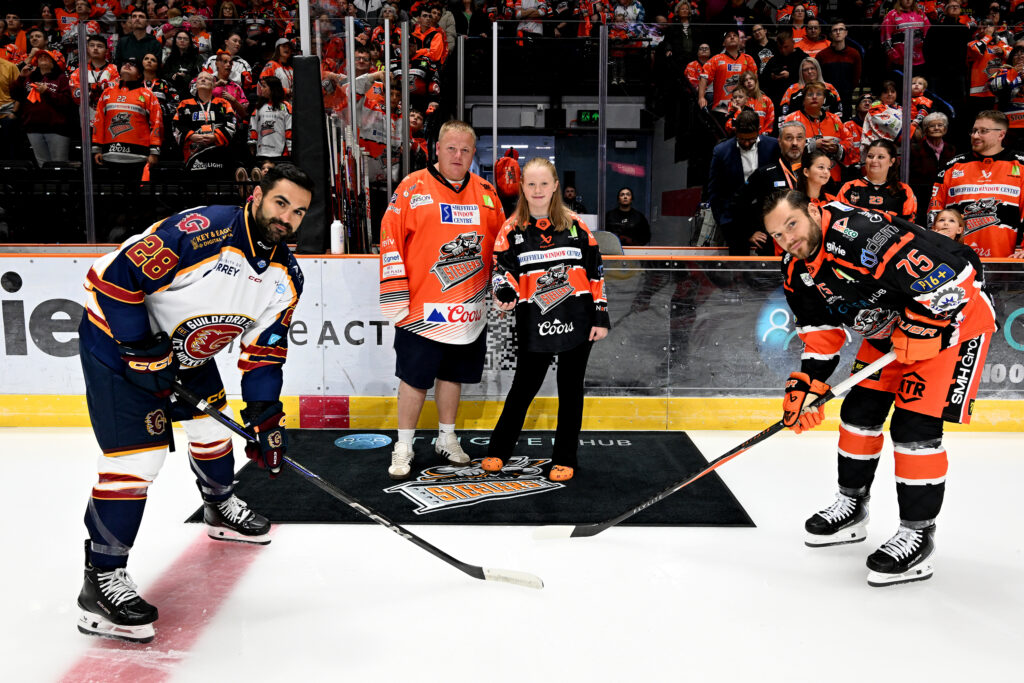Gareth and Lilly Kennedy Sharpe dropped the puck at the start of the game with the two Captains