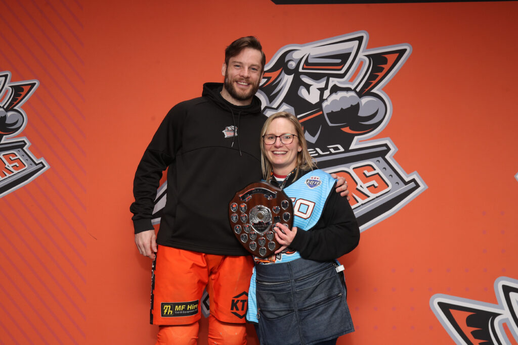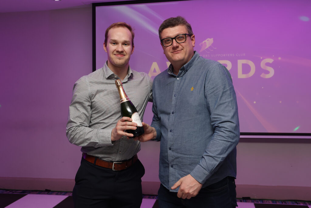 The fans who travel up and down the Country with the SSSC voted Dominic Cormier their “Away Player of the Year” with Tracy Shaw making the presentation.