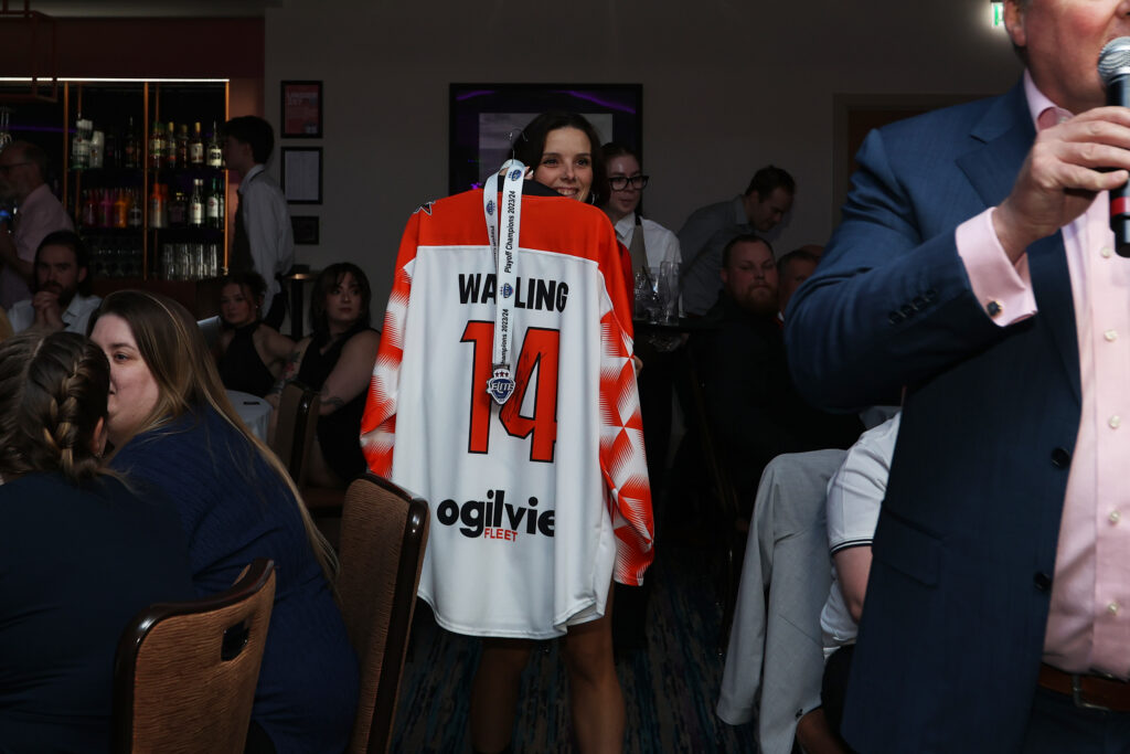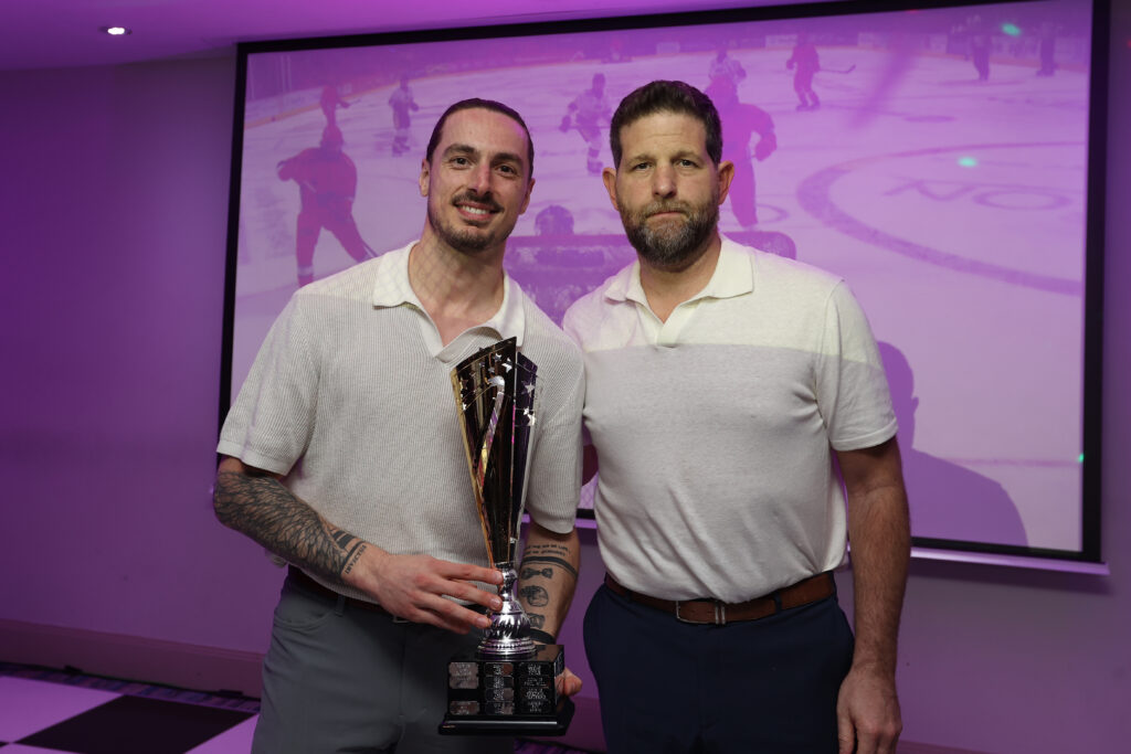 Aaron then stayed on stage and presented Sam Tremblay with the Coaches player of the year award