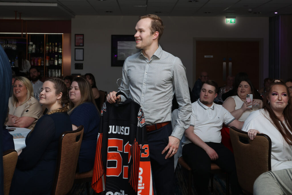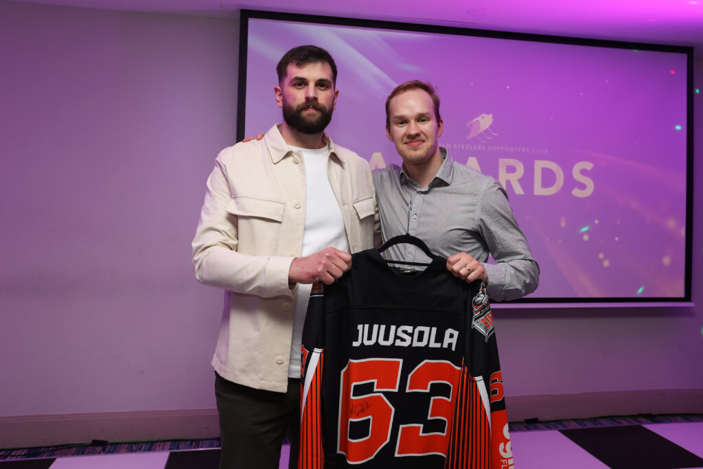 The first award of the evening went the way of Mikko Juusola for his goal against the Panthers in the Challenge Cup semi final, Michael Chapman making the presentation.