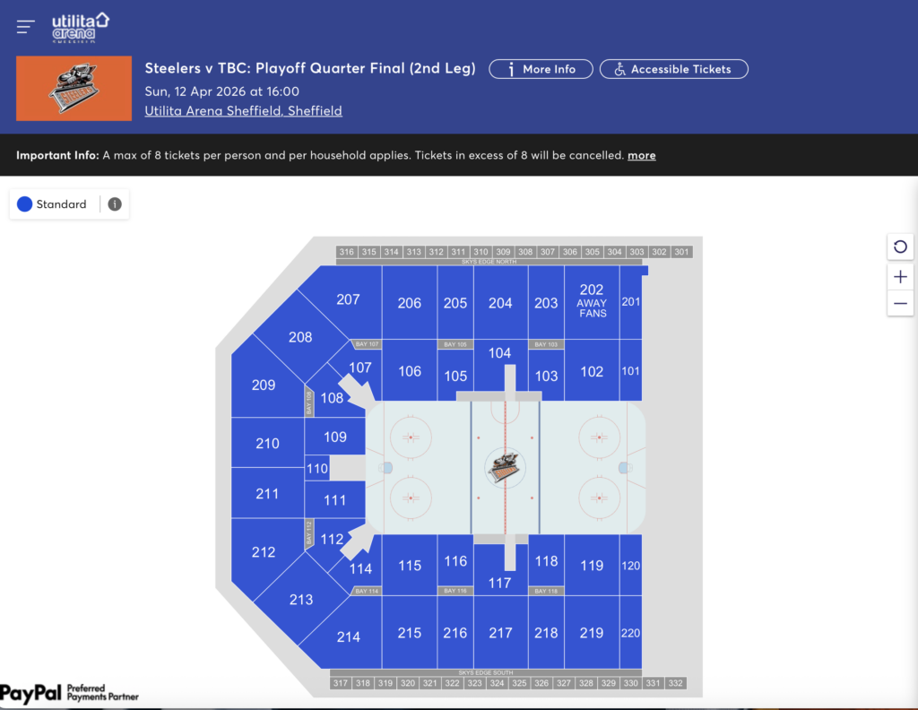 Season Tickets have reserved their season ticket seats via the Steelers HUB Account and now all remaining tickets are available for purchase – the last HOME game of the the 2025-26 EIHL season.