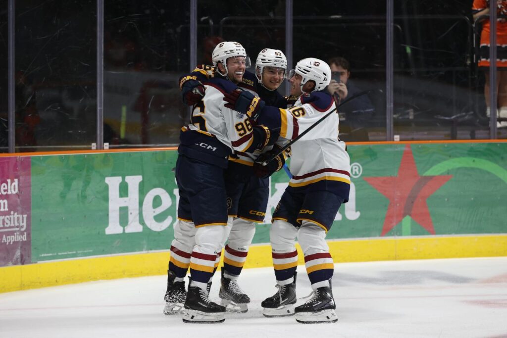 In a stunning 47-second spell, the Flames struck twice to level the game. First, Gosselin deflected home an Ethan Strang effort from close range, and then Charlie Curti joined the rush to fire a perfect shot over Greenfield’s glove to make it 3–3. The Steelers pushed again late on, especially after Sean Comrie’s high-sticking double minor on Cole Shudra gave them a four-minute powerplay. Despite several dangerous looks from Balmas and Dowd, Burman and the Flames’ penalty kill held firm to force overtime.