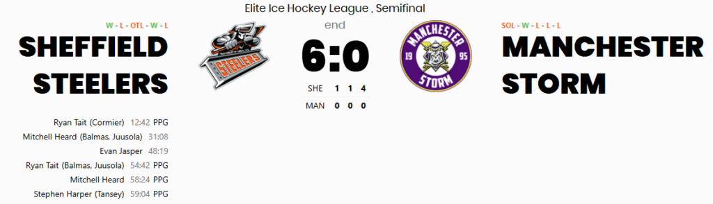 The Steelers produced a commanding and clinical performance at the Nottingham Arena, sweeping aside the Manchester Storm with a resounding 6-0 victory to book their place in the Play-Off Final. In a high-stakes semi-final clash, the Steelers combined discipline, clinical finishing, and outstanding goaltending from Matthew Greenfield to overwhelm a Storm side that simply couldn’t convert their opportunities. Despite the Storm registering 23 shots on goal, the Steelers’ efficiency and control in key moments proved decisive.
