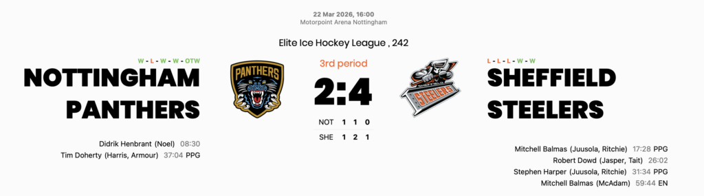 Steelers back in action on Sunday afternoon in Nottingham less than 24 hours after the 4-2 home defeat on Saturday evening.